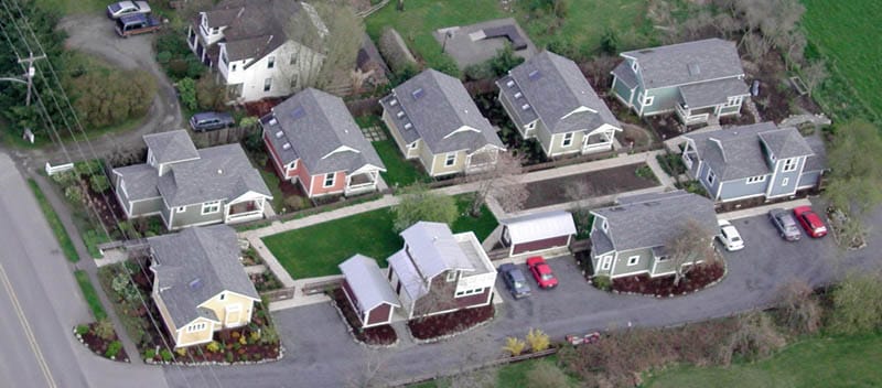 In my definition, a pocket neighborhood is a social cluster of households. Cottages are not the crucial component. Nor is a classic courtyard pattern. A pocket neighborhood may also have clustered homes along a greenwalk or woonerf lane, or be a multi-family apartment court. The essential factor is its social dimension: having a small group of households oriented around a shared open space with ways to ensure privacy. In writing codes, I believe this is the factor to keep in focus.
