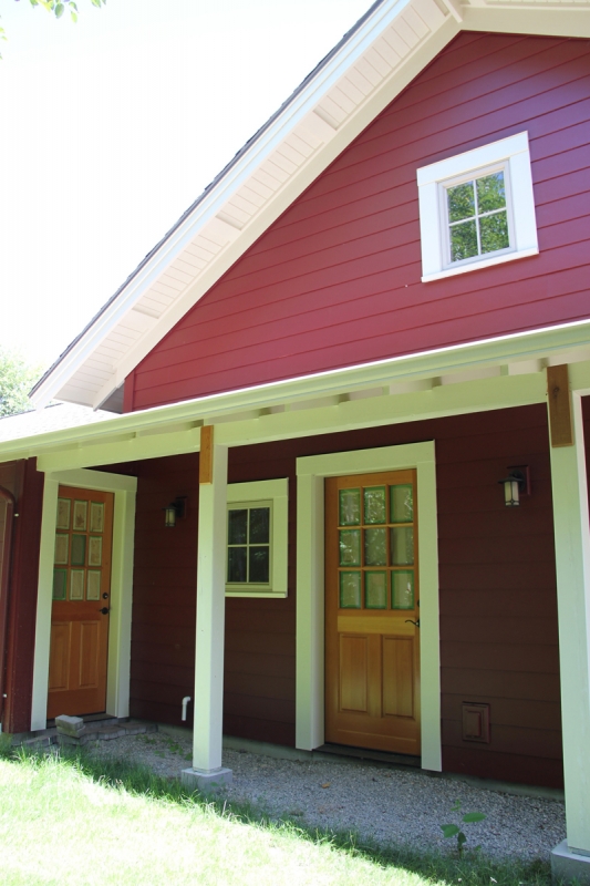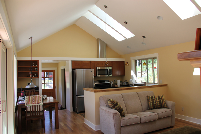 This small cottage and workshop/garage are the initial footholds on a rural property. The cottage is home for now and will eventually serve as a guesthouse after the main house is built. Both the cottage and workshop were built by Neil Chapman, Brixton Builders.