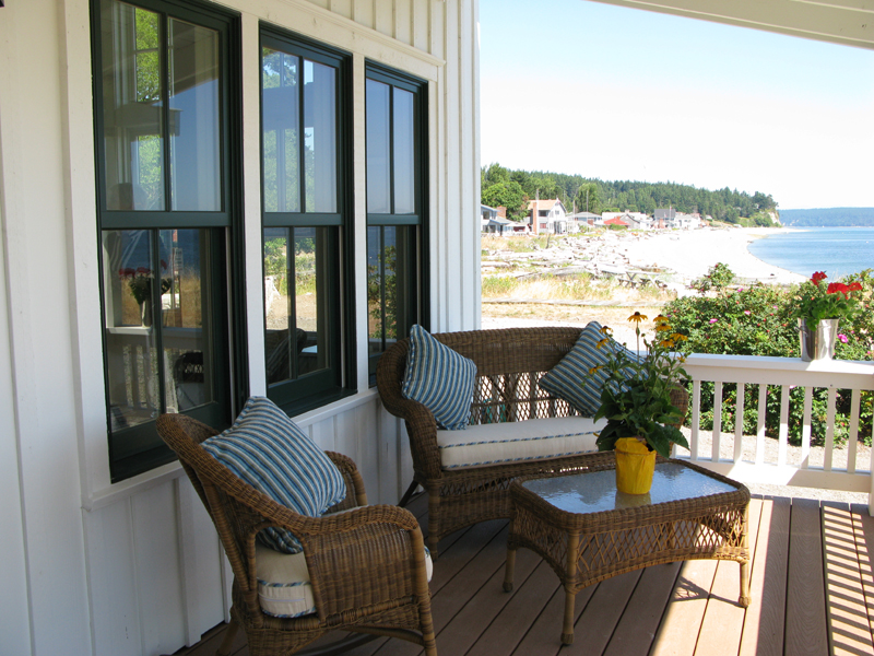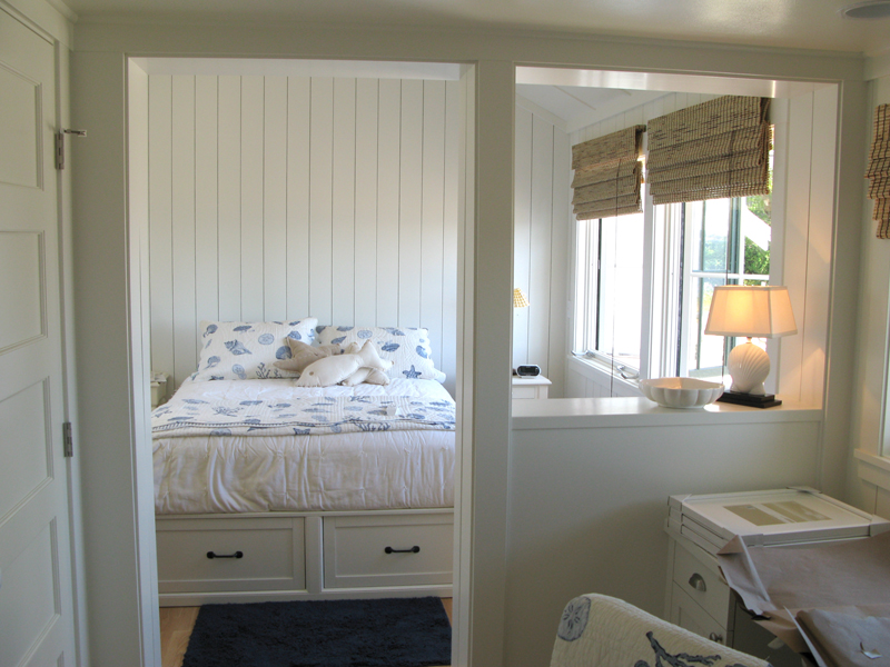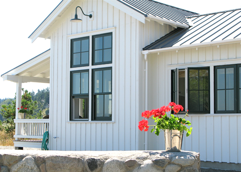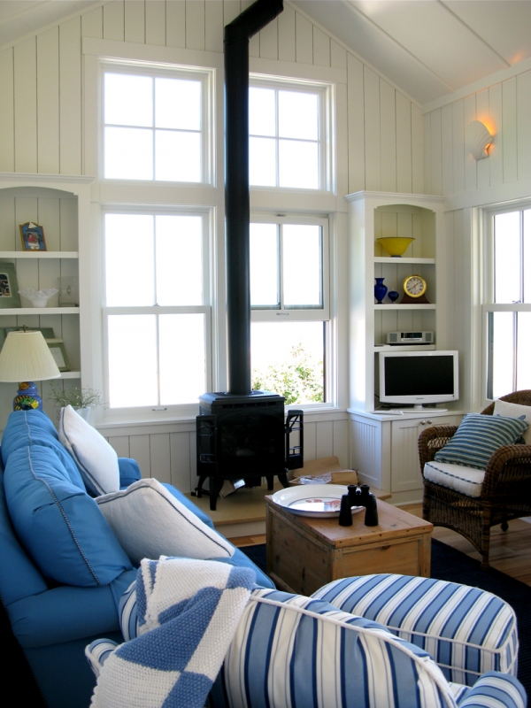 This 1258 sf beach cottage and studio was inspired by early island vernacular cabins.