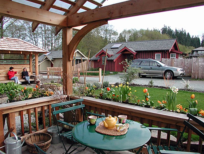 The front houses (1200-1600 SF) provide spacious living areas with garages and lush yards. The backyard cottages (425 SF) serve multiple purposes—functioning as offices, art studios, family housing, guest accommodations, or rentals for local workers. This arrangement offers greater lifestyle flexibility than single large homes would allow.