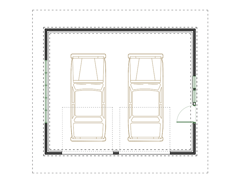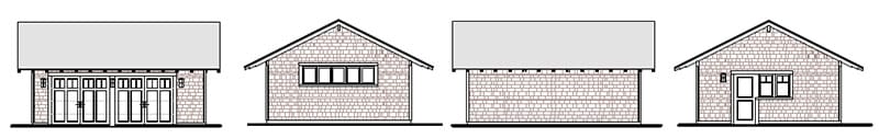 This two-car garage features extended eaves and refined detailing distinctive to the Dines Point series. Thoughtfully crafted, it echoes the architectural language of the main house while offering functional shelter with understated elegance.
