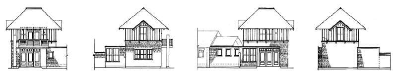 Designed as part of a cohesive ensemble, the Dine’s Point Studio pairs beautifully with the main house and companion garage plan—together creating a flexible, well-composed trio for living, working, and storage. The studio and house are featured in The Distinctive Home by Jeremiah Eck.