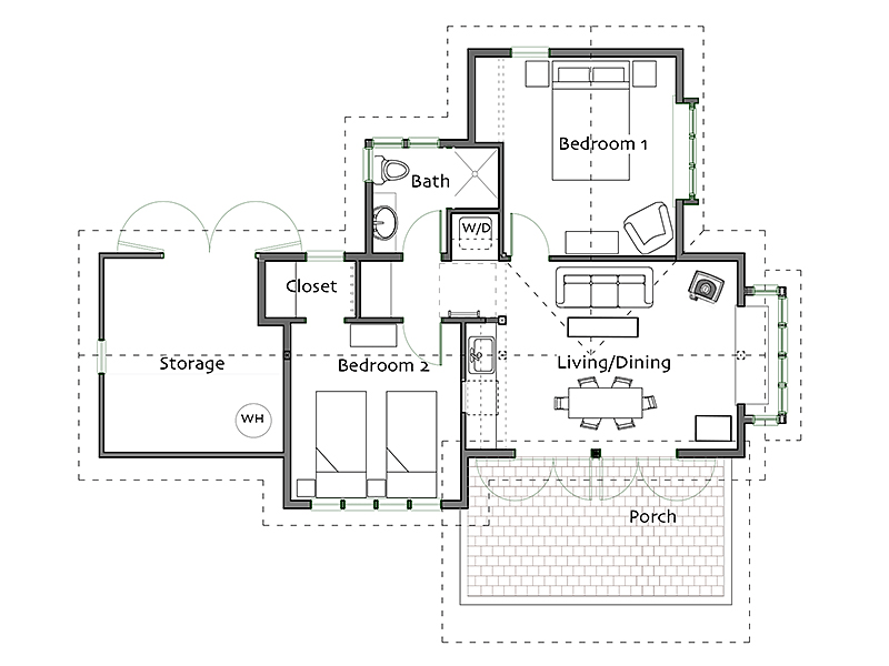 Footprint: 45’ x 33’ (includes covered porch)