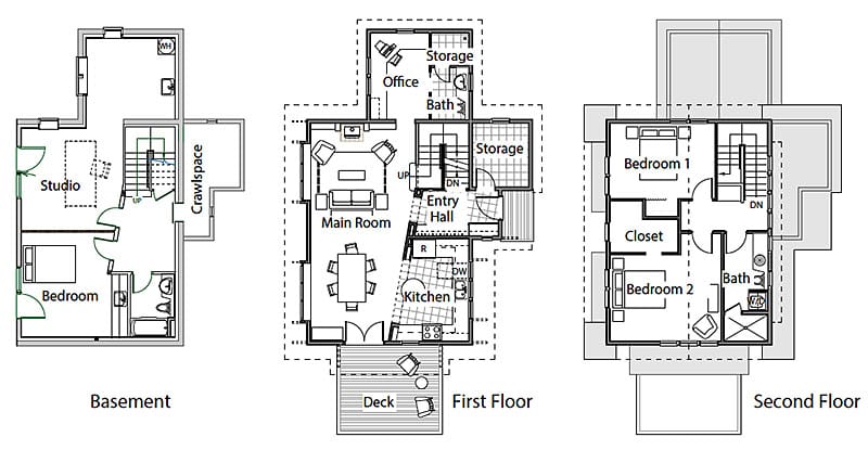 Option: No lower level. The first and second floors total 1570 sf. The plans call for a basement, but by working with your builder and engineer, the foundation plan may be modified.
