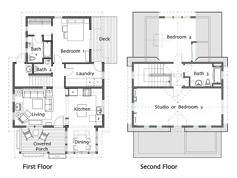 Footprint: 32′ x 42′ (includes covered deck)