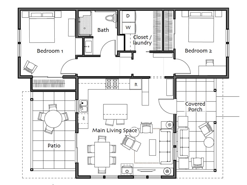 Willows Willows 1010 2B 1B 1 Story1010 SF2 Bedrooms1 Bathroom Footprint: 34′ x 42′ Height to roof peak: 16′ -7″ $1,450.00ADD TO CART Floor Plan and Elevations PDF Frequently Asked Questions GoodFit License Agreement