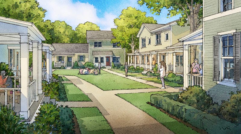 Beyond individual units, the size and arrangement of homes in relation to each other profoundly impacts community formation. Pocket neighborhoods, as I’ve explored in my own work, are clusters of nearby neighbors around a shared commons of some sort — micro-neighborhoods built with a scale of sociability. This pattern for houses, apartments, or even mobile homes, creates an intermediate zone between the street and front door — a safe space where children can play, elders feel secure knowing others are around, and impromptu chats and get togethers are fostered among neighbors.